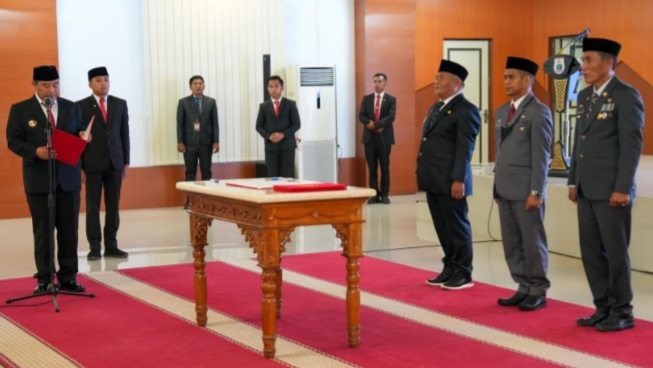 Pj.Gubernur Sulbar Bahtiar Baharuddin mengatakan bahwa, hari ini saya ditugaskan Menteri Dalam Negeri melantik tiga pejabat Pemprov.Sulbar menjadi penjabat sementara Bupati Mamuju, Pasangkayu dan Majene.