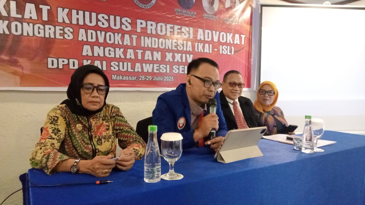 Mamujuekspres.com|MAKASSAR|–Dewan Pimpinan Daerah Kongres Advokat Indonesia Indra Sahnun Lubis (DPD KAI-ISL) Sulawesi Selatan, Menggelar kegiatan Diklat Khusus Profesi Advokat (DKPA), berlangsung Tanggal 28-29 Juni 2025, bertempat di Manado Room Hotel Kyriad Haka Makassar, 28 Juni 2025.